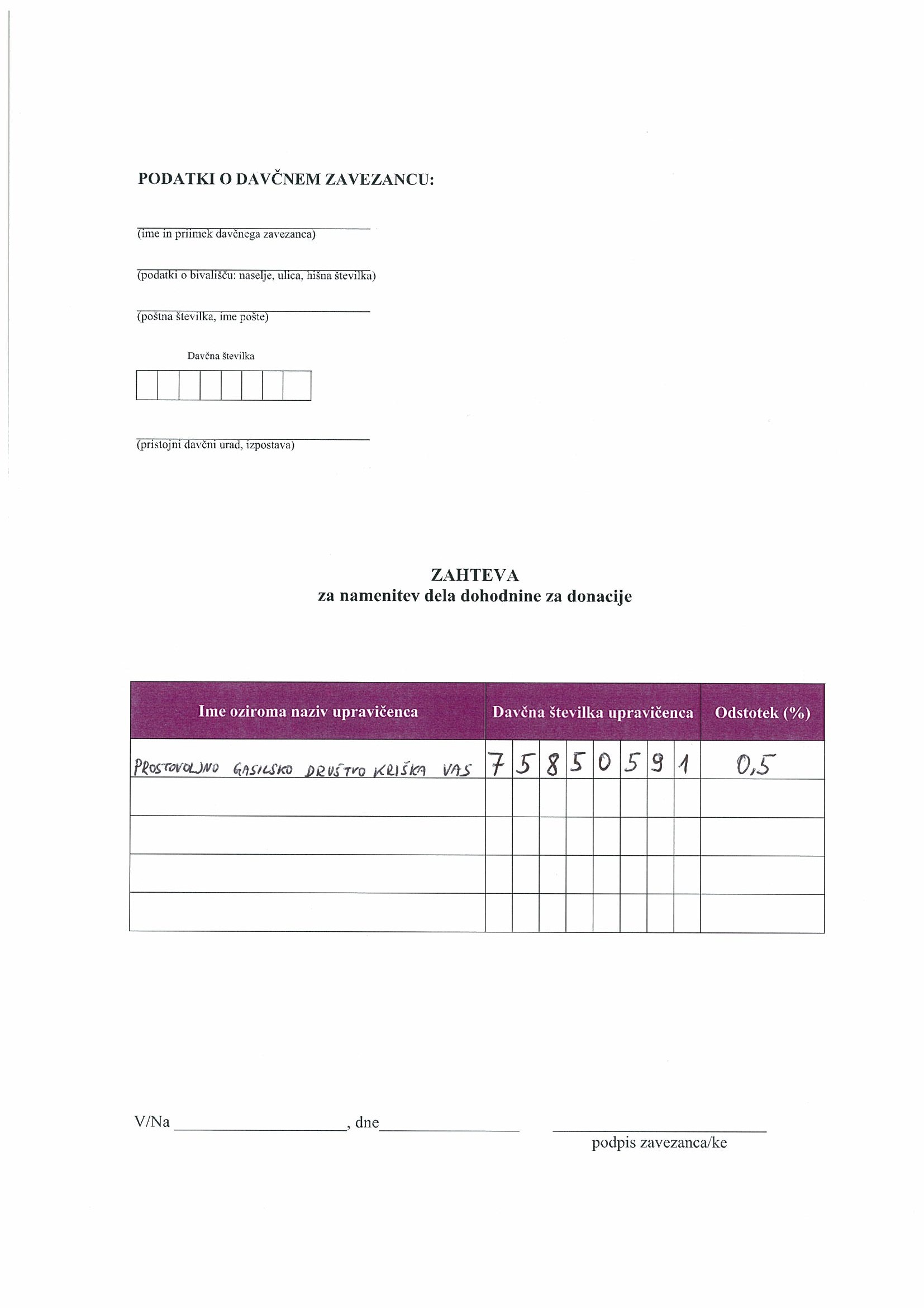 Del dohodnine za PGD Kriska vas